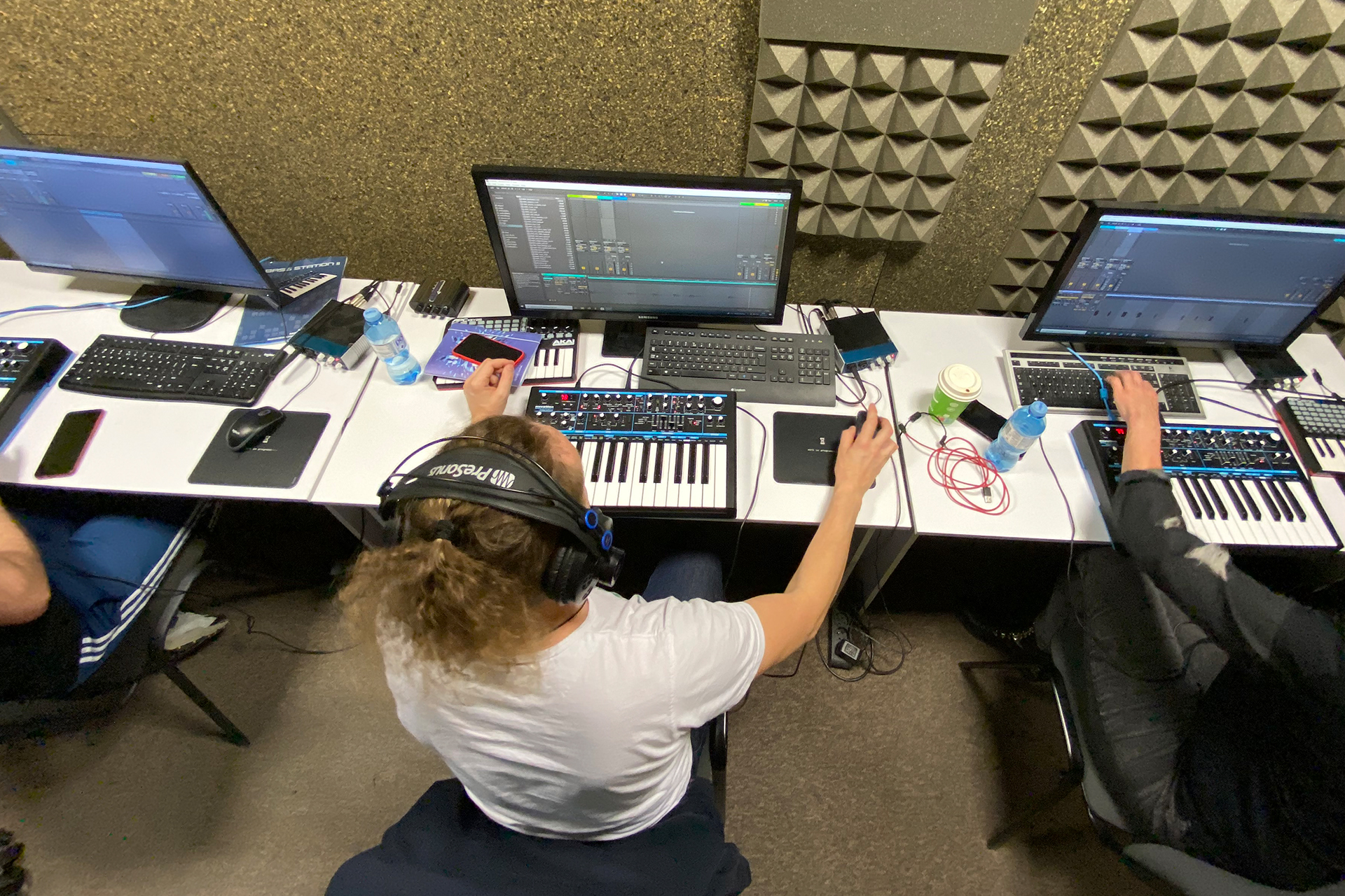 W wyposażonej pracowni muzycznej znajdziesz baterię syntezatorów sprzętowych i kontrolerów, które będziesz wykorzystywać do tworzenia muzyki