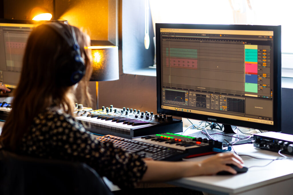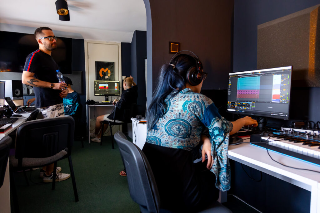 Tworzenia gotowych utworów muzycznych pod czujnym okiem doświadczonych producentów z kadry nauczycielskiej